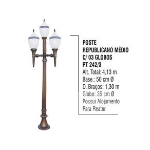 01 Poste Colonial Republicano Jardim de Alumínio 03 Globo 4,80m