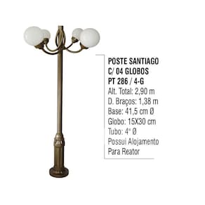 01 Poste Colonial Santiago Para Jardim Alumínio 04 Globos 2,90m