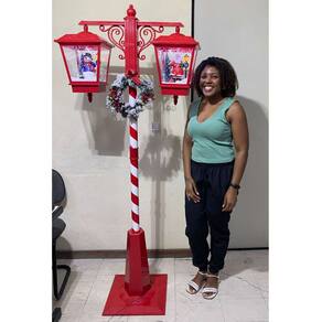 E o corpo do poste traz as icônicas listras vermelhas e brancas, lembrando os doces natalinos, e reforçando o charme do Natal.