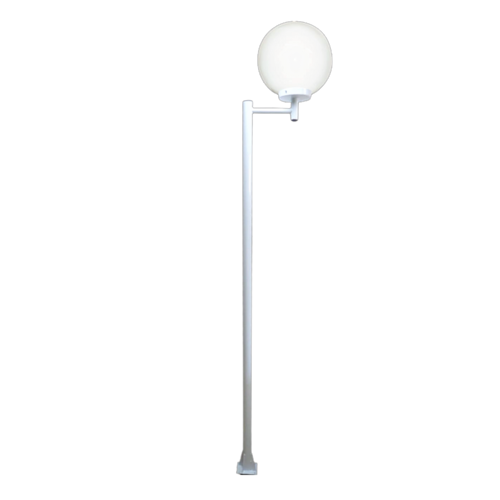 01 Poste e Luminária Globo G Braço Reto Jardim Branco 300cm.