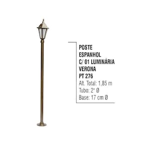 01 Poste Espanhol Jardim de Alumínio 01 Luminária Verona 1,85m