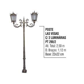 01 Poste Las Vegas Para Jardim de Alumínio 02 Luminária 2,50m