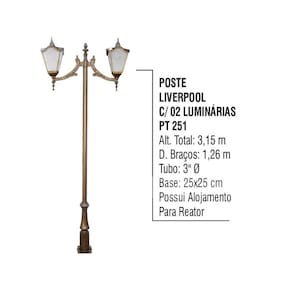 01 Poste Liverpool Para Jardim de Alumínio 02 Luminária 3,15m