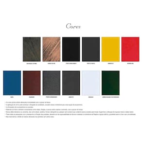 Cores disponíveis: Preto Brilhante, Branco, Dourado Pátina, Ouro Velho, Preto Fosco, Amarelo, Vermelho, Azul, Marrom, Prata Craqueado, Grafite e Verde Musgo Texturizado.