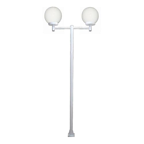 Poste Luminária Dupla Globo G Braço Reto Jardim Branco 300cm