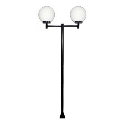 Poste Luminária Dupla Globo P Braço Reto Jardim Preto 300cm