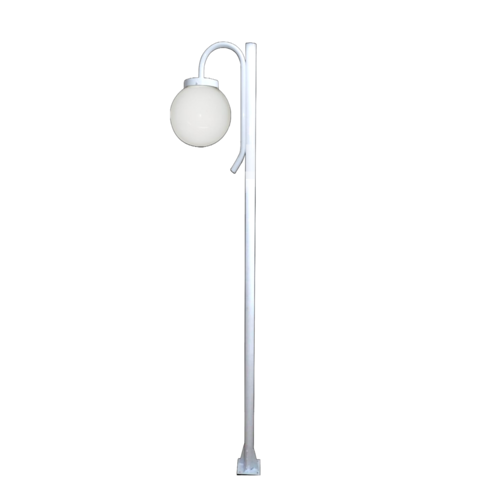 01 Poste Luminária Globo G Braço Curvo Baixo Jardim Branco 2Mt.