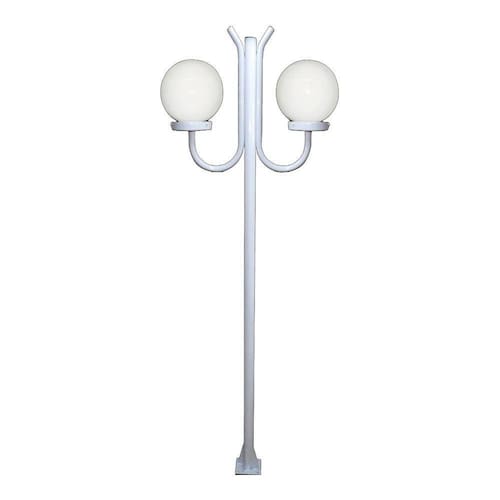 Poste Luminária Globo G Duplo Braço Curvo Cima Branco 300cm