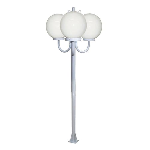 01 Poste Luminária Globo G Triplo Braço Curvo Cima Branco 200cm.