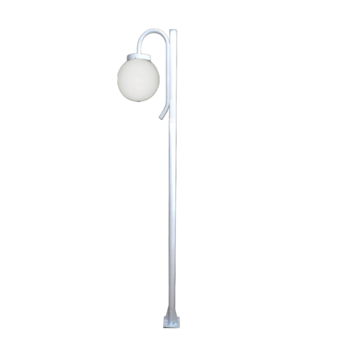 Poste Luminária Globo P Braço Curvo Baixo Jardim Branco 3Mt
