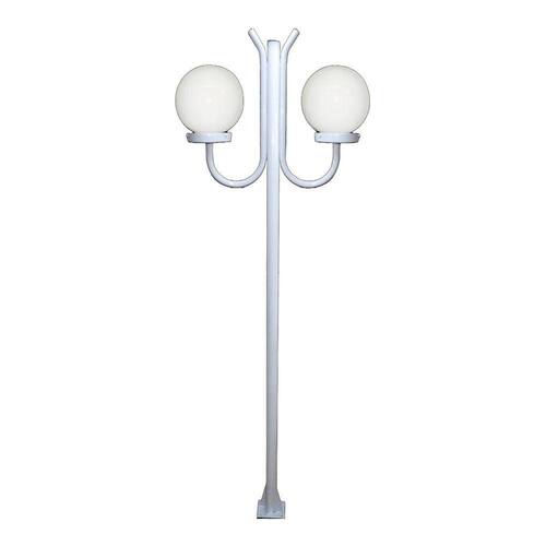 Poste Luminária Globo P Duplo Braço Curvo Cima Branco 200cm