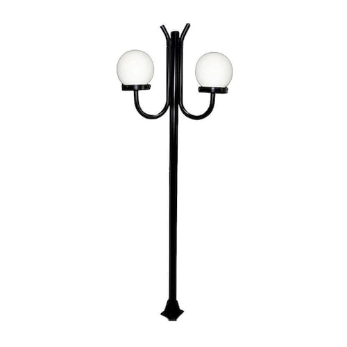Poste Luminária Globo P Duplo Braço Curvo Cima Preto 200cm