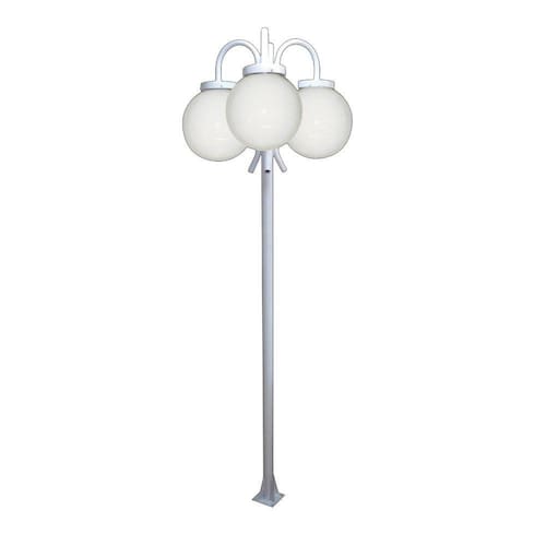 Poste Luminária Globo P Triplo Braço Curvo Baixo Branco 2mt