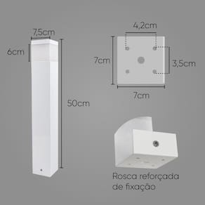 Poste Luminária Jardim 50cm Alumínio Branco + LED 12W luz Quente ST222