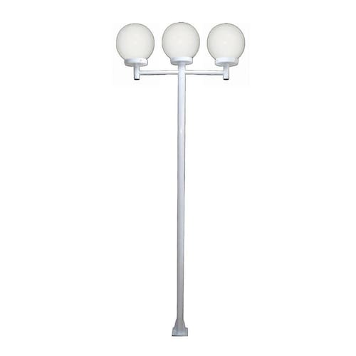 01 Poste Luminária Triplo Globo P Braço Reto Jardim Branco 200cm.