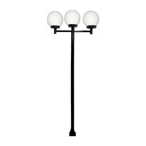 Poste Luminária Triplo Globo P Braço Reto Jardim Preto 200cm