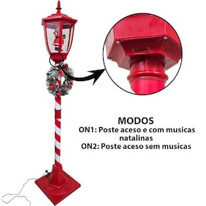 E o corpo do poste traz as icônicas listras vermelhas e brancas, lembrando os doces natalinos, e reforçando o charme do Natal.