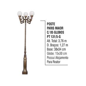 Poste Paris Maior P/ Jardim de Alumínio 05 Globo 3,76m