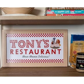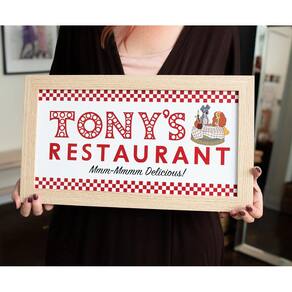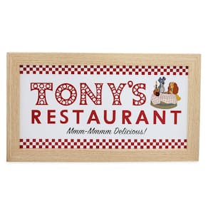 Silver Buffalo Disney Classics Lady and the Tramp Tony's Restaurant Casaco de gel emoldurado MDF pôster de arte para decoração de parede, 25 x 45 cm - ARTE DE PAREDE: Aproveite esta arte de parede em gel MDF do restaurante Tony's Lady and the Tramp Tony's Restaurant 45,7 cm x 25,4 cm - FÁCIL DE PENDURAR: Pendura sem esforço em qualquer local com o hardware de pendurar dente de serra pré-anexado já anexado - TAMANHO PERFEITO: A arte de parede mede 25,4 cm x 45,7 cm e pode ser facilmente exibida em sua casa, escritório ou nave espacial - Licenciado oficialmente: tenha confiança sabendo que você está comprando uma arte de parede oficialmente licenciada pela Disney da Silver Buffalo - É um ótimo presente: esta arte de parede é um ótimo presente para todos os fãs da Disney em sua vida