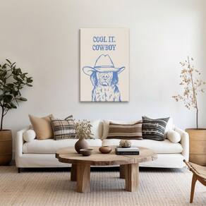 Pôster com citação Blue Dog – Arte motivacional de parede "Cool It Cowboy" para casa, escritório e dormitório