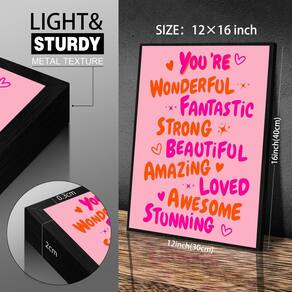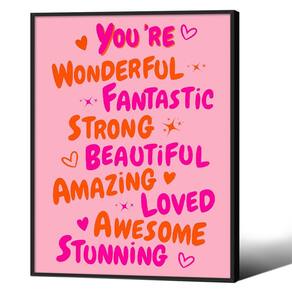 Transforme seu espaço com nossos pôsteres de afirmações positivas de lembrete diário projetados para inspirar e elevar todos os dias. Feitas com tela de alta qualidade, nossas impressões de parede oferecem cores vibrantes e durabilidade excepcional. A decoração estética de parede é perfeita para qualquer quarto, dormitório ou escritório, integrando-se perfeitamente com estilos maximalistas e minimalistas. - Os tamanhos dos pôsteres com citação inspiradora You Are Doing Amazing são: 30,5 x 40,6 cm, o pôster vintage é embrulhado e esticado em uma moldura de madeira e colocado em uma moldura de alumínio preta. - Decoração de quarto moderno: com excelente combinação estética inspiradora de cores e design de padrão, é fácil misturar e combinar diferentes estilos de casa para criar uma vibração acolhedora em qualquer espaço, como sala de estar, quarto, cozinha, banheiro, sala de jantar, hotel de escritório, bar de restaurante ou qualquer outra ocasião. - Decoração de parede elegante: arte minimalista de decoração de parede moderna usa tinta ecológica de alta qualidade e tela de alta qualidade, e use as melhores impressoras da indústria para pulverização em camadas, as cores são delicadas e a transição é natural. Traz prazer visual. - Presentes perfeitos: os pôsteres rosa modernos são um presente ideal para aniversários, inaugurações de casa, feriados ou qualquer evento especial. Que sorte é a arte de parede adiciona um toque chique a qualquer parede, trazendo uma mistura única de vibrações vintage e modernas ao seu espaço. - Serviço pós-venda: Valorizamos muito sua experiência de compra, se você tiver algum problema com o pôster rosa de decoração de quarto comprado, por e-mail na primeira vez. Esperamos resolver quaisquer problemas que você possa encontrar de forma rápida e eficiente.