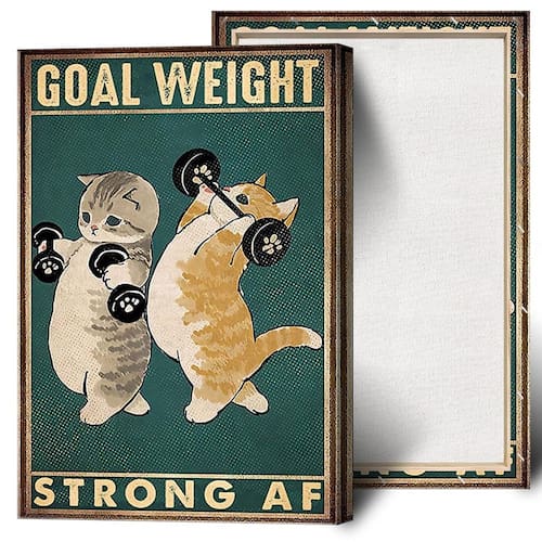 Eleve seu espaço de vida com a arte de parede "Funny Cat Target Weight Workout" – um pôster de musculação com halteres para gatos de academia que combina humor, inspiração e estilo. Esta impressão em tela de alta qualidade é perfeita para decorar sua sala de estar, quarto, escritório ou qualquer cômodo onde você precise de um impulso motivacional. A estética minimalista vintage e o design retrô moderno garantem que esta obra de arte se encaixe perfeitamente em uma variedade de estilos de interiores. Seja você um entusiasta do fitness ou simplesmente desfrute de uma decoração única e peculiar, este pôster com gatos atleta animais trará um sorriso ao seu rosto e inspirará você a alcançar seus objetivos. Adicione um toque de diversão e motivação às suas paredes com esta peça excepcional de arte de parede hoje! - Motivação fitness inspiradora: este pôster engraçado de treino para gatos apresenta um gato de academia envolvido no levantamento de peso, proporcionando uma mensagem inspiradora e motivacional que se encaixa perfeitamente em qualquer academia, sala de estar ou quarto. Ideal para entusiastas de fitness que amam um toque de humor. - Impressão em tela de alta qualidade: Feita de material de tela premium, esta arte de parede garante cores vibrantes e durabilidade. O design minimalista complementa a estética moderna e vintage, tornando-a uma adição versátil à sua decoração. - Decoração de quarto versátil: Adequado para vários espaços como banheiros, quartos, salas de estar, escritórios, cozinhas de fazendas e muito mais. Se você deseja adicionar um elemento peculiar à área do seu sofá ou criar um ponto focal no seu espaço de treino, este pôster oferece. - Estilo retrô descolado: com seu estilo retrô e minimalista vintage, esta impressão de fisiculturismo de gato adiciona um toque único e artístico a qualquer cômodo. A mistura de humor e inspiração atlética a torna uma peça de destaque que despertará conversas e admiração. - Tema de atleta animal estético: Apresentando atletas animais como gatos envolvidos em musculação e levantamento de peso, este pôster traz uma vibração divertida e poderosa para sua casa. Perfeito para aqueles que apreciam a interseção de fitness, arte e humor.