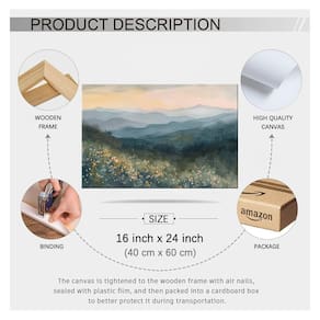Este pôster da natureza é inspirado na natureza, representando montanhas majestosas e paisagens naturais tranquilas. Os picos na imagem estão se elevando nas nuvens, as delicadas camadas de cores gradualmente se transitam e as florestas à distância ecoam as montanhas à distância, trazendo um prazer visual profundo e confortável. Os tons gradientes suaves, combinados com a técnica de aquarela vívida, dão a esta pintura uma sensação de fluidez e vitalidade, como se as montanhas estivessem sussurrando na brisa e a água estivesse fluindo tranquilamente no vale. Se você estiver em uma vida agitada na cidade ou em um espaço tranquilo, esta obra de arte de parede de cenário de montanha pode fazer você sentir o poder e a tranquilidade da natureza instantaneamente. Não é apenas uma pintura de arte, mas também uma espécie de conforto espiritual - Arte de parede em tela de montanha: o tamanho da pintura de paisagem é de 40 x 61 cm, esta decoração de parede de montanha é embrulhada e esticada sobre moldura de madeira, para criar um efeito 3D imersivo que faz a arte parecer ótima - Cartazes duráveis e de alta qualidade: arte de paisagem Use tinta de proteção ambiental de alta qualidade, não desbota facilmente, cores vivas, à prova d'água, resistente a UV, sem odor. A arte de parede de cenário adicionará um toque de estilo e personalidade às suas paredes - Arte de parede florestal: este pôster da natureza é inspirado na natureza, representando montanhas majestosas e paisagens naturais tranquilas. A arte da montanha fornece decoração para cozinha, sala de jantar, bar, dormitório, sala de estar, quarto, apartamento, hotel, escritório - Presentes divertidos: não é apenas uma pintura de arte, mas também um tipo de conforto espiritual. Seja dado como presente de aniversário, Natal, Natal, inauguração de casa ou qualquer outra ocasião especial, a pintura em aquarela surpreenderá e encantará o destinatário - Serviço pós-venda: valorizamos muito sua experiência de compra, se você tiver algum problema com a arte de parede em tela de paisagem. Você pode entrar em contato conosco por e-mail na primeira vez. Esperamos resolver quaisquer problemas que você possa encontrar de forma rápida e eficiente