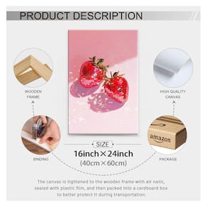 Esta decoração de arte de parede com tema de frutas não apenas apresenta um contraste nítido de cores, mas também combina elementos modernos e naturais, quebrando a monotonia e o embotamento da decoração de parede tradicional. Cada padrão é cheio de aroma frutado vívido. As decorações brilhantes e os elementos populares de lantejoulas adicionados ao design de morango fazem com que cada trabalho exale um brilho único, moderno e elegante. É muito adequado para estilos contemporâneos de design doméstico, especialmente moderno minimalista, estilo nórdico ou quartos de estilo leve de luxo. Pode não apenas adicionar cor e vitalidade ao espaço, mas também trazer uma atmosfera artística para a sala através de um design requintado - Arte de parede de frutas: o tamanho do pôster da bola de discoteca é de 40,6 x 61 cm, esta arte de parede moderna é embrulhada e esticada sobre moldura de madeira. Pronta para ser pendurada diretamente, você pode criar uma atmosfera moderna e vibrante - Cartazes duráveis e de alta qualidade: arte de parede minimalista Use tinta de proteção ambiental de alta qualidade, não desbota facilmente, cores vivas, à prova d'água, resistente a UV, sem odor. A arte de parede em tela rosa adicionará um toque de estilo e personalidade às suas paredes - Decoração de bola de discoteca rosa: pode não apenas adicionar cor e vitalidade ao espaço, mas também trazer uma atmosfera artística para a sala através de um design requintado. A decoração de parede de morango pode fornecer decoração para cozinha, sala de jantar, bar, dormitório, sala de estar, quarto, apartamento, hotel, escritório - Presentes de verão: esta decoração de arte de parede com tema de frutas não apenas apresenta um contraste nítido de cores, mas também combina elementos modernos e naturais. Seja dado como aniversário, Natal, presente de férias, inauguração de casa ou qualquer outra ocasião especial, a arte de parede moderna surpreenderá e encantará o destinatário - Serviço pós-venda: Valorizamos muito sua experiência de compra, se você tiver algum problema com a arte estética de parede da bola de discoteca, por e-mail na primeira vez. Esperamos resolver quaisquer problemas que você possa encontrar de forma rápida e eficiente