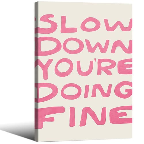 Radie positividade com o pôster "Slow Down, You're Doing Fine", uma afirmação comovente para qualquer espaço. Com tons rosa suaves, esta decoração de parede serve como um lembrete diário para abraçar a jornada e celebrar o progresso. Quartos, escritórios ou qualquer lugar em que você precise de um incentivo, complementa lindamente outros pôsteres rosa. Infunda ao seu redor vibrações edificantes e motivação suave, tornando cada dia um passo em direção ao crescimento pessoal e bem-estar. - Decoração de parede de afirmação: o tamanho da arte de parede descolada é de 40,6 x 61 cm, esta decoração de parede feminina é enrolada e esticada sobre moldura de madeira, para criar um efeito 3D imersivo que torna a obra de arte ótima - Cartazes duráveis e de alta qualidade: pôsteres estéticos rosa usam tinta de proteção ambiental de alta qualidade, não desbota facilmente, cores vivas, à prova d'água, resistente a UV, sem odor. A arte de parede com citação adicionará um toque de estilo e personalidade às suas paredes - Cartazes para quarto de meninas adolescentes: com tons suaves de rosa, esta decoração de parede serve como um lembrete diário para abraçar a jornada e celebrar o progresso. Decoração de parede rosa choque que pode fornecer decoração para cozinha, sala de jantar, bar, dormitório, sala de estar, quarto, apartamento, hotel, escritório, casa de praia costeira - Presente inspirador: irradie positividade com o pôster "Slow Down, You're Doing Fine", uma afirmação comovente para qualquer espaço. Seja dado como aniversário, Natal, presente de férias, inauguração de casa ou qualquer outra ocasião especial, pôsteres rosa irão surpreender e encantar o destinatário - Serviço pós-venda: valorizamos muito sua experiência de compra, se você tiver algum problema com os pôsteres inspiradores, por e-mail na primeira vez. Esperamos resolver quaisquer problemas que você possa encontrar de forma rápida e eficiente