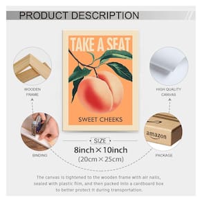 Transforme seu banheiro em um refúgio de estilo e inspiração com nossa decoração de parede de banheiro. Esta impressão artística é o complemento perfeito para qualquer lavabo, trazendo um toque de personalidade e estilo. Se você está procurando um presente para um amigo ou o presente perfeito para você, nossa obra de arte pode ser emoldurada e exibida. Esta peça versátil pode ser usada como uma placa de dormitório de faculdade, impressão de colega de quarto ou arte de classe para melhorar seu espaço. Use nossa decoração de parede de dormitório universitário para expressar sua personalidade e criar um espaço que reflita seu estilo e aspirações únicos. - O tamanho dos pôsteres emoldurados retrô é: 20 x 25 cm. A decoração do banheiro é embrulhada e esticada sobre moldura de madeira, pronta para ser pendurada diretamente. - Arte de parede de banheiro engraçada: arte de parede engraçada para decoração de bumbum agradável, esta obra de arte é projetada para adicionar um toque de humor e leveza à decoração do seu banheiro, criando uma presença divertida e divertida no espaço do seu banheiro - Estética em tom laranja: pôsteres retrô bonitos combinados com frutas pêssegos rosa da moda e estampas arrojadas de bochechas doces são uma adição peculiar e bem-humorada a qualquer cômodo, promovendo positividade corporal e poder feminino. - Ideias perfeitas para decoração de parede: Estes pôsteres de banheiro divertidos e modernos são uma escolha versátil para qualquer espaço e aprimorarão facilmente qualquer canto da sua casa ou escritório. Se você quiser adicionar ao seu banheiro, casa, sala de estar, quarto, dormitório, apartamento, escritório, hotel ou bar, essas impressões se misturam facilmente e adicionam uma vibração de humor. - Serviço pós-venda: Assim que sua arte de pôsteres de impressão em tela chegar, se você tiver alguma outra dúvida, pela Amazon a qualquer momento e em qualquer lugar, responderemos no menor tempo. Sua satisfação é nossa única busca.