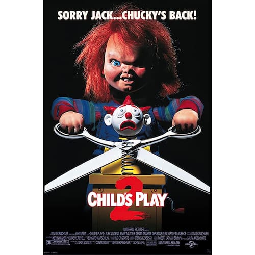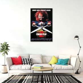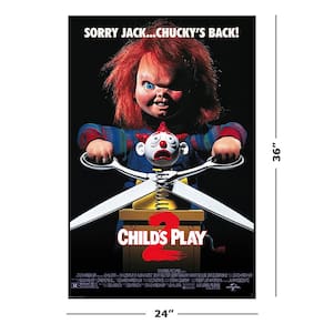 - Pôster de filme premium de 61 cm x 91 cm com o icônico design de Brinquedo Assassino 2 e o slogan "Desculpa Jack... Chucky está de volta!"