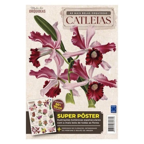 Desfrute das ilustrações botânicas espetaculares das Catleias, as mais belas orquídeas. Este super pôster em formato 50x70cm apresenta detalhes únicos sobre os períodos de floração, intensidade do perfume e regiões de origem dessas flores magníficas. Ideal para amantes de orquídeas e colecionadores, esta peça de arte botânica é perfeita para decorar qualquer ambiente, trazendo a beleza e a elegância das Catleias para sua casa.
