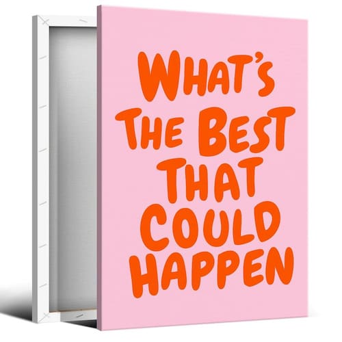 - Arte rosa preppy "What's the Best That Could Happen": Com um fundo rosa alegre, esta impressão estimula o otimismo e uma mentalidade positiva, tornando-a ideal para quartos, dormitórios ou espaços criativos