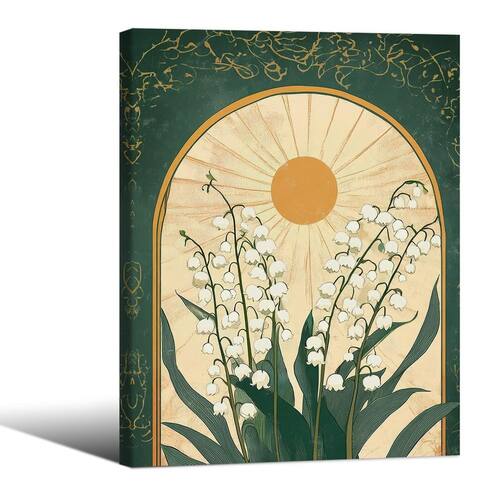 Arte de parede vintage lírio do vale verde florido pôster sol impressão em tela botânica arte popular mística para casa quarto dormitório galeria decoração