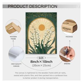 - ?Arte de parede de lírio do vale?Várias opções de tamanho: 20,3 x 25,4 cm/28 x 35,6 cm/30,5 x 40,6 cm/40,6 x 61 cm/50,8 x 76,2 cm/61 x 91 cm. O pôster de decoração de arte espiritual é embrulhado e esticado sobre moldura de madeira, pronto para ser pendurado diretamente.