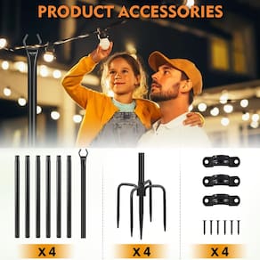 FEED GARDEN Poste de luz de corda - Pacote com 4 postes de aço para pendurar no exterior para decoração externa de jardim, quintal, suporte de iluminação de pátio para festas, Natal, casamento - ?Design 2 em 1? Os postes de luz 2 em 1 atualizados da FEED GARDEN oferecem a solução perfeita para melhorar seu espaço ao ar livre sem esforço. Com um pé de 5 pinos e suporte em forma de U, esses postes podem ser facilmente instalados em pastagem, solo ou até mesmo em uma cerca, oferecendo infinitas possibilidades para decorar seu pátio, jardim ou quintal. Depois de montar o poste de luz, ele deve ser alinhado com o corrimão do deck ou coluna da cerca e fixado com parafusos e suportes. - ?FÁCIL INSTALAÇÃO? Basta conectar e apertar as peças do mastro e inseri-las no chão. Nenhuma ferramenta é necessária para esta configuração sem complicações. Para instalação em deck e cerca, cada poste de luz de corda vem com 3 suportes e 6 parafusos. Alinhe os postes com o corrimão do deck ou postes de cerca e prenda-os com os parafusos e suportes fornecidos. - ?Resistente e antiferrugem?Feito com materiais metálicos de alta qualidade com revestimento resistente à ferrugem, esses postes de luzes de corda para uso externo são construídos para suportar os elementos e proporcionar desempenho duradouro. O design robusto e a estrutura reforçada os tornam excepcionalmente duráveis, garantindo que eles possam lidar com os rigores do uso externo sem comprometer sua estabilidade ou força. - ?SIMPLICIDADE E ESTILO PARA TODAS AS OCASIÕES?Cada poste de luz consiste em várias seções, normalmente sete partes, cada uma com 400 cm de comprimento, oferecendo flexibilidade no ajuste da altura total com garfo de base de 5 pinos. Estes postes podem ser facilmente inseridos no chão do seu jardim, pátio ou quintal para pendurar luzes de Natal, luzes de pátio, bandeiras, sinos de vento, potes de vidro e muito mais. Estes postes de luz para ambientes externos são o presente ideal para tornar seu novo capítulo ainda mais especial. - ?SOBRE NÓS? A FEED GARDEN oferece postes de luz de corda de alta qualidade e serviço pós-venda eficiente. Se você não estiver satisfeito com nossos produtos, , forneceremos uma solução o mais rápido possível.