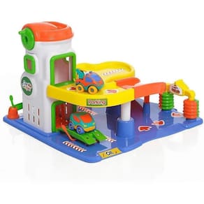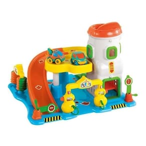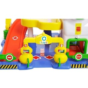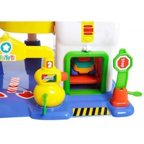 É uma plataforma super colorida e recheada de interações, vem com um carrinho e um guincho.