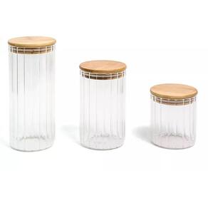 :: acabamento especial: a tampa de bambu é selada para suportar umidade. dá para guardar alimentos mais líquidos e pode até ir na geladeira. e o vidro canelado traz aquele charme na peça. bacana, né?