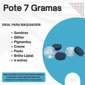 Os potes possuem capacidade para 7g de cremes ou 3g de pós.