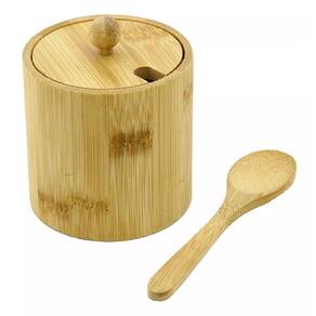 Detalhes do produto: - Acompanha: 1 pote com tampa + 1 colher - Material: Bambu - Dimensões: Pote - 8cm de diâmetro x 8cm de altura Colher - 13cm - Capacidade: 200ml