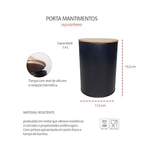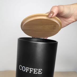 Porta utensilios, pote de cafe e açucar em lata com tampa hermetica. Potes sao produzidos em aço carbono e tampa de bambu. Os porta mantimentos possui pintura galvanizada interna e externa na mesma cor. Pote hermetico possui tampa de bambu com anel de silicone, acabamento resistente a corrosao e propriedades antiferrugem.