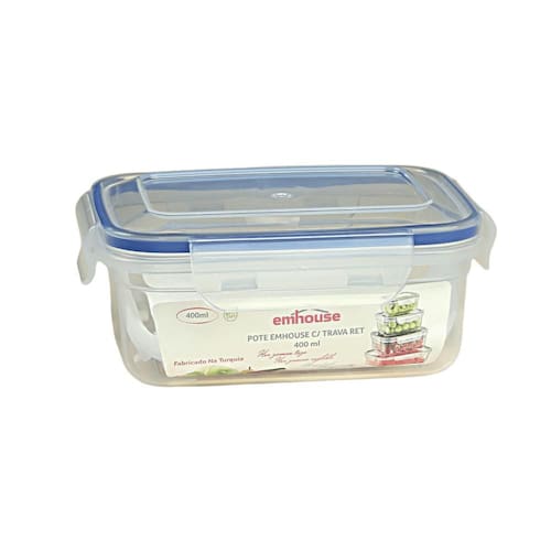 Pote com Trava Retangular PP 400ml EMHOUSE