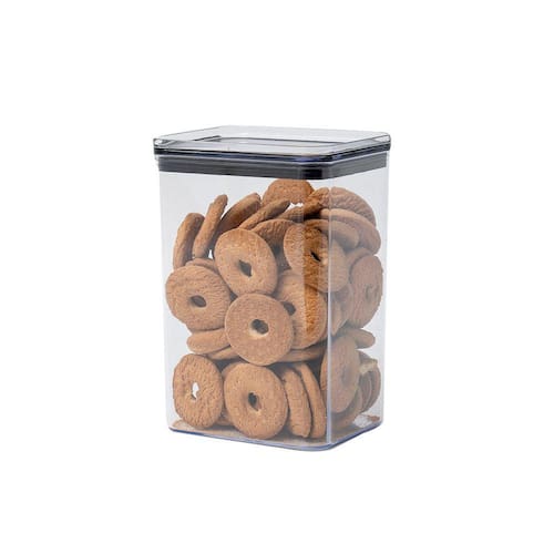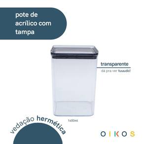 Conheça o pote de acrílico 1,6L com tampa transparente quadrado empilhável da Oikos!