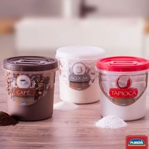 Pote de Plástico Redondo para Café com tampa rosca. Confeccionado em polipropileno, material atóxico, livre de BPA (BPA Free). Pode ser levado para o micro-ondas, congelador ou freezer.