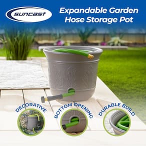 Suncast Pote de mangueira de plástico decorativo resistente de 1,8 l para mangueiras expansíveis e leves, ideal para uso em jardim, pátio e quintal