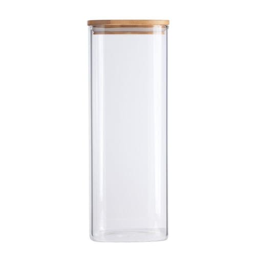 O Pote de Mantimentos Quadrado Flat com Tampa de Bambu da OIKOS é perfeito para organizar e conservar seus alimentos.