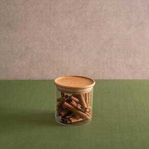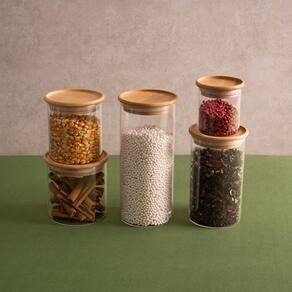 O Pote de Mantimentos Circular com Tampa de Bambu da OIKOS é perfeito para organizar e conservar seus alimentos.