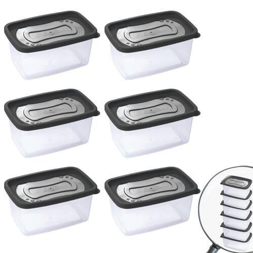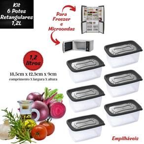 Conjunto com 6 potes de plástico retangulares com tampa, sendo cada um com capacidade para 1,2 litros. São produzidos em polipropileno de alta resistência e durabilidade e material atóxico livre de bisfenol (BPA Free). Podem ser levados ao freezer e micro-ondas.