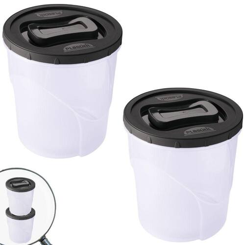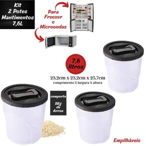 Conjunto com 2 potes de plástico redondos altos com tampa de rosca, sendo cada um com capacidade para 7,6 litros. São produzidos em polipropileno de alta resistência e durabilidade e material atóxico livre de bisfenol (BPA Free). Podem ser levados ao freezer e micro-ondas. Material: polipropileno Capacidade: 7,6 litros Comprimento: 23,2 cm / Largura: 23,2 cm / Altura: 25,7 cm