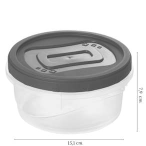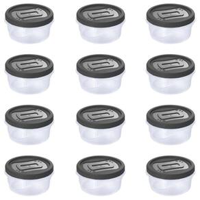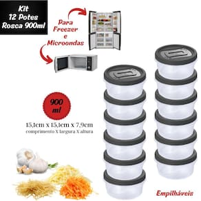 Conjunto com 12 potes de plástico redondos com tampa de rosca, sendo cada um com capacidade para 900ml. São produzidos em polipropileno de alta resistência e durabilidade e material atóxico livre de bisfenol (BPA Free). Podem ser levados ao freezer e micro-ondas. Cada um deles comporta uma porção generosa dos mais variados tipos de alimentos do dia a dia e seu tamanho é ideal para as sobras das refeições.